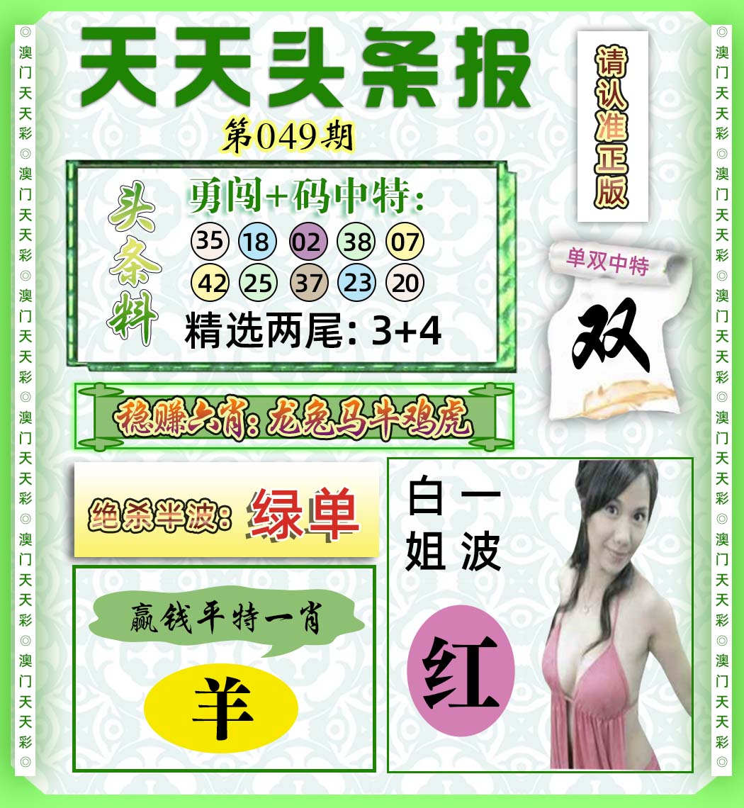 澳门天天彩 『单双两波』 |